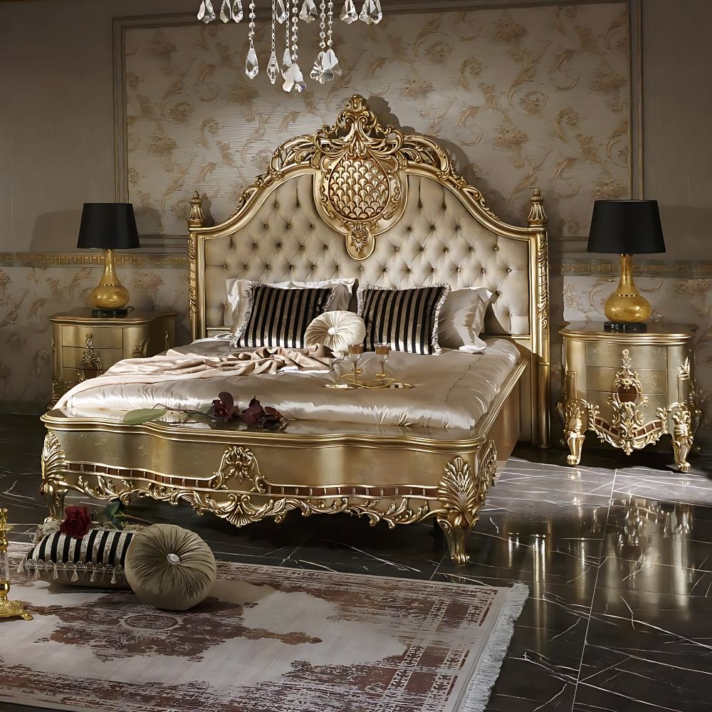 Champagne Gold Royal Italian Bedroom Set – Luxurious Baroque Style Furniture