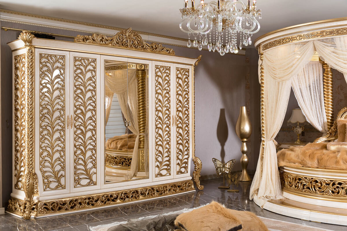 Set Included: Luxury Bed + Dress + Mirror + 2 Night Stand +Wardrobe