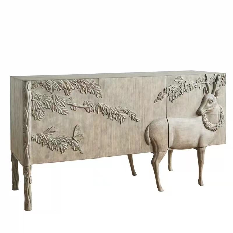 Leg Style: Sculpted legs—one shaped as part of the deer for a sculptural look