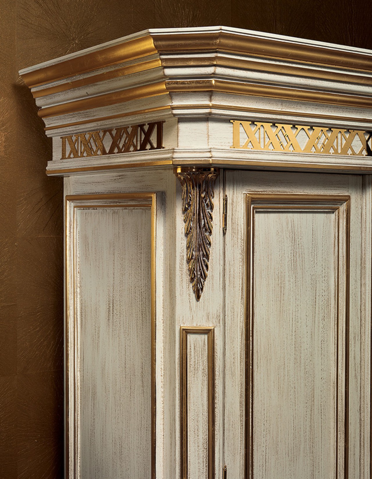 Luxurious Cream Finish with Gold Leaf Detailing: hand-applied gold leaf accents for a radiant, regal allure.