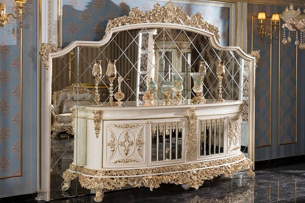 Sideboard/Buffet: Mirror-panel design with ornate gold carvings