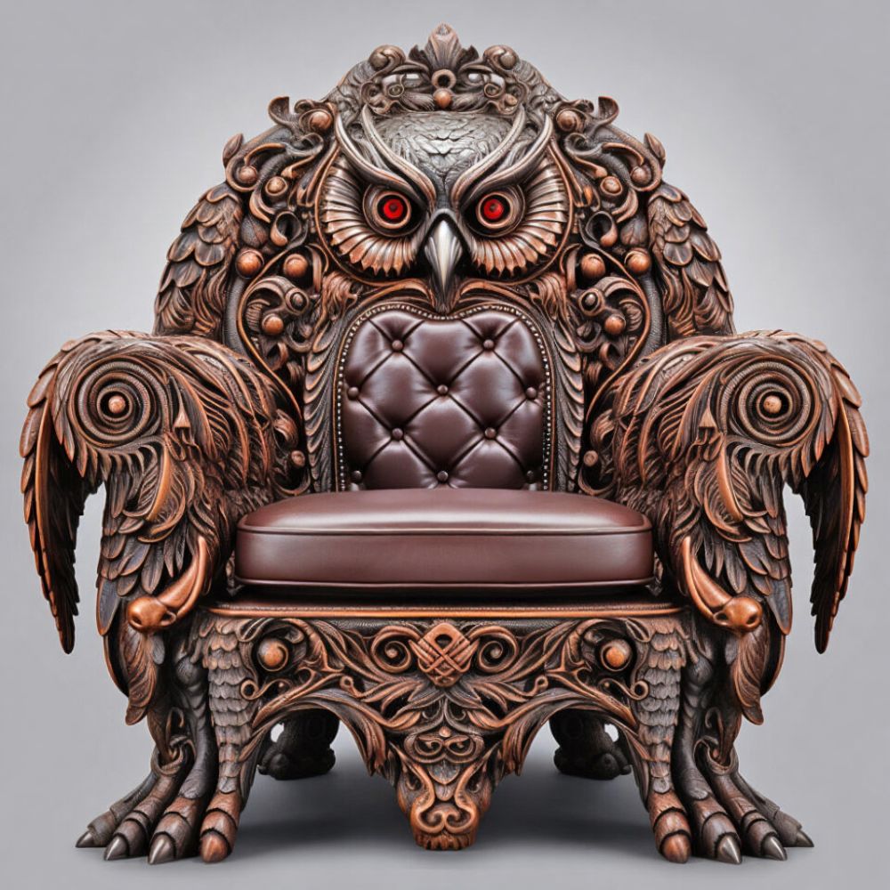 Intricate Owl Design: Stunningly carved to resemble a regal owl, complete with detailed feathers, piercing red eyes, and sculptural wings and talons.
