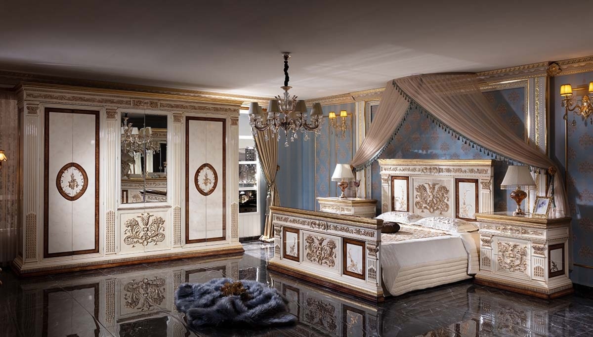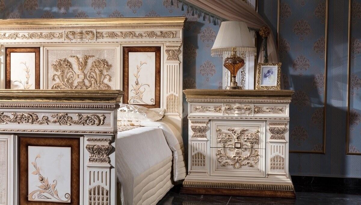 Premium ivory and antique gold finish with rich ornamental detailing throughout
