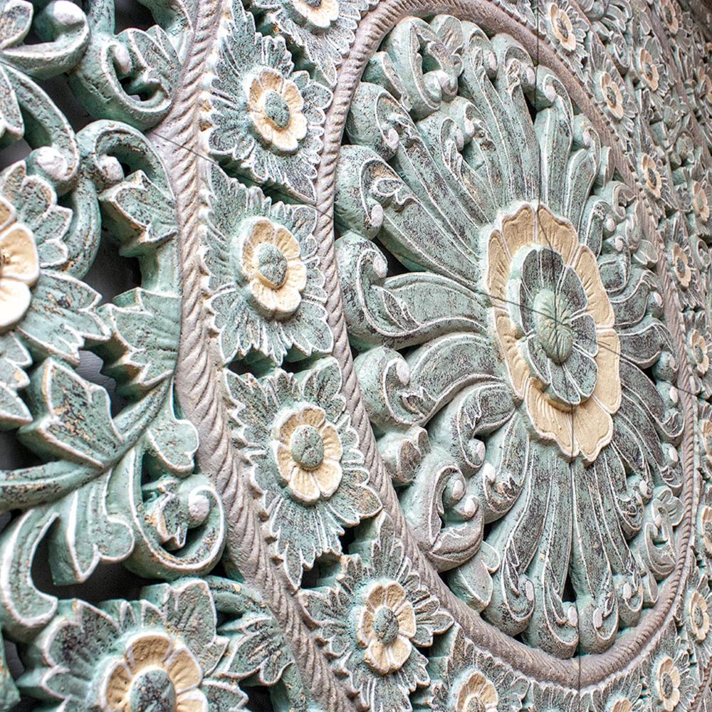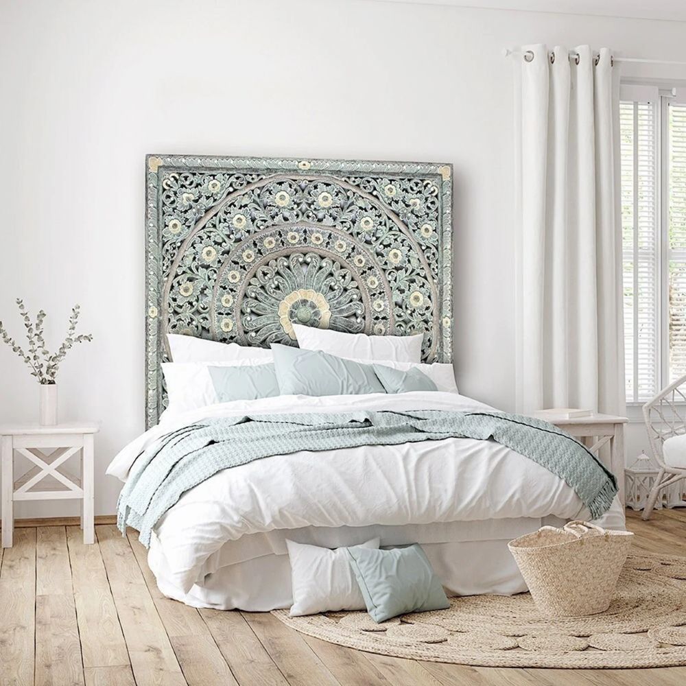 Intricate Mandala Motif: The headboard showcases a delicately carved mandala pattern that symbolizes peace, balance, and artistic heritage.