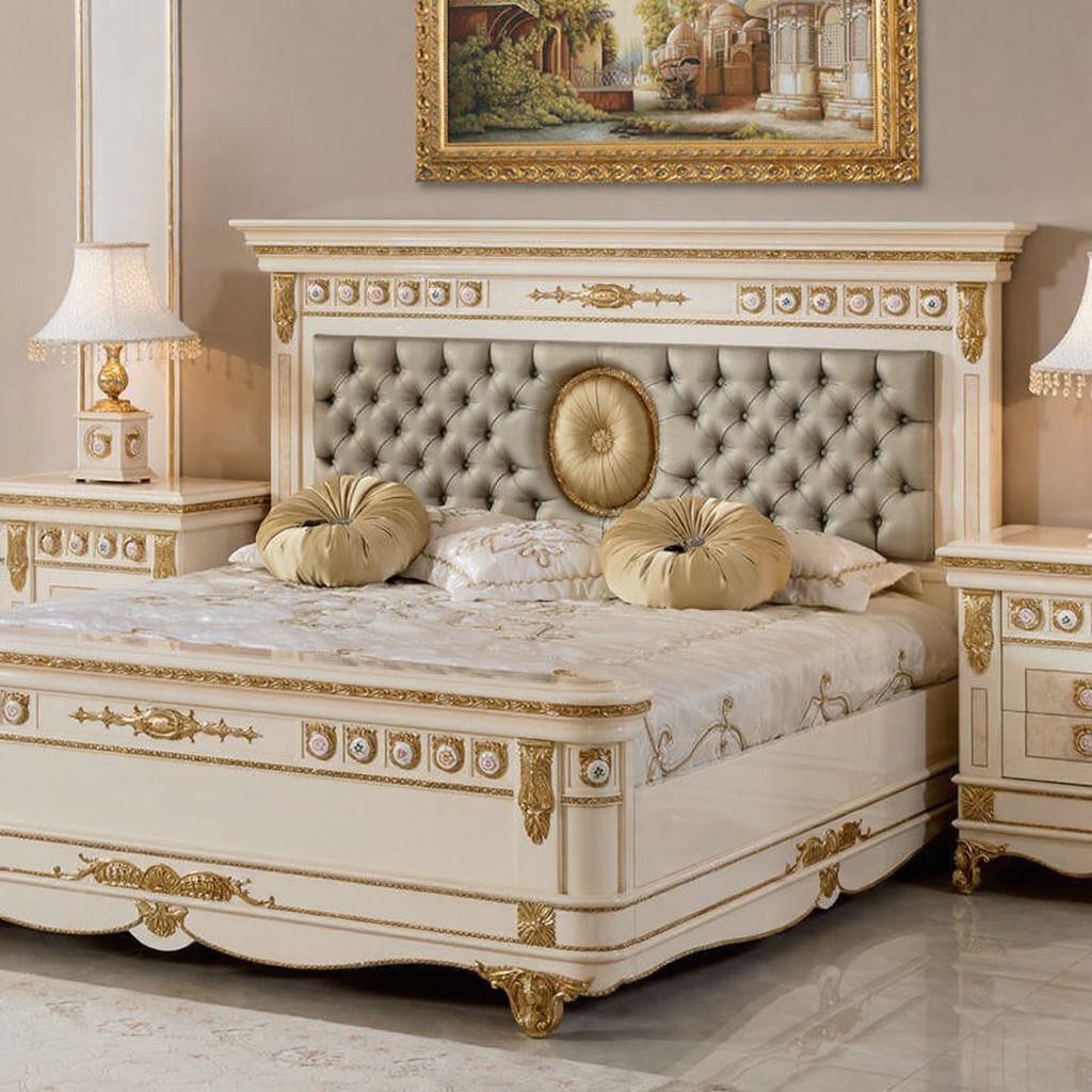 Timeless Elegance: Classic cream and gold palette opulent bedroom themes.