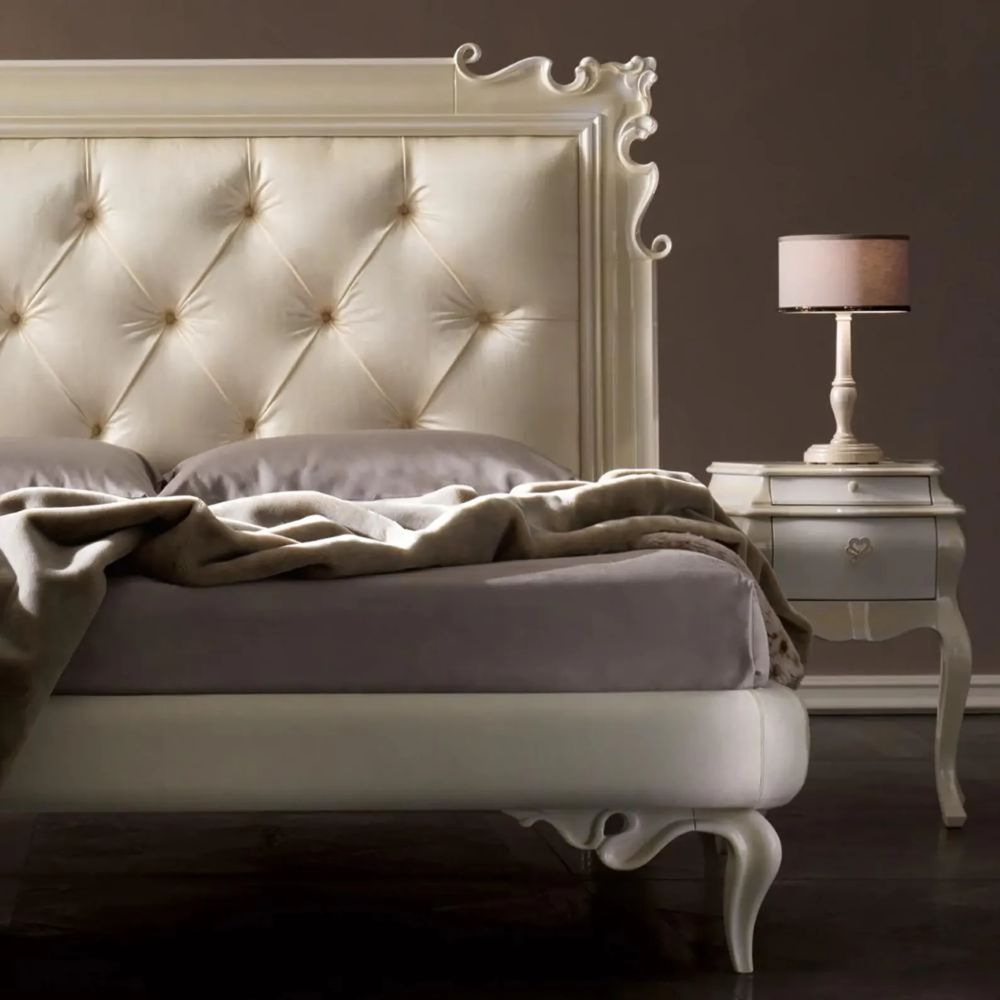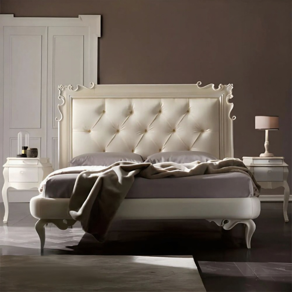 Product Name: Luxury Tufted Bed in Vintage White – Victorian Colonial Style