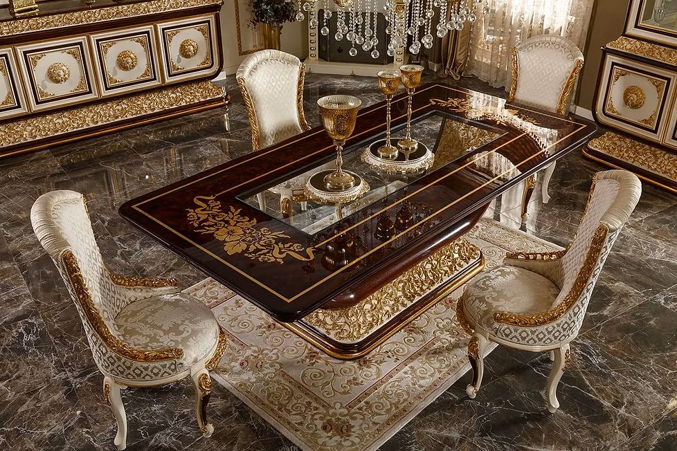 Set Included: Luxury Dining Table + 6 Chair + Console + Mirror + Crockery Unit