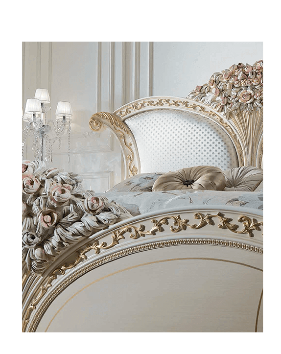 Rich Gold Accents on Antique White Finish, giving the room a majestic palace-like ambiance.